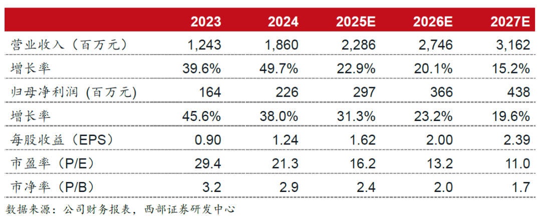 全年业绩符合预期,海外拓展+非车端弹簧成长可期。我们预计2025-2027年公司营收22.9/27.5/31.6亿元,同比+23%/+20%/+15%,归母净利润3.0/3.7/4.4亿元,同比+31%/+23%/+20%。考虑到公司具备优质客户结构,同时海外业务拓展+非车端弹簧有望开启新一轮成长周期。给予“买入”评级。