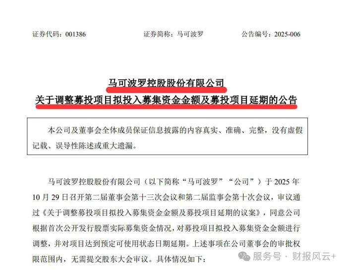 请招商证券的肖雁,万鹏两位保代出来解释一下,马可波罗上市8天就公告项目延期,为何2个多月前的招股书没任何项目延期风险提示?