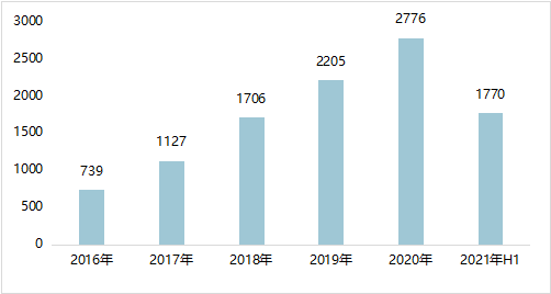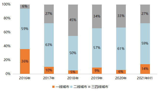 图:招商蛇口2016-2021年H1各能级城市新增土储占比(按规划建面)