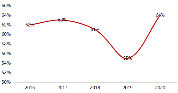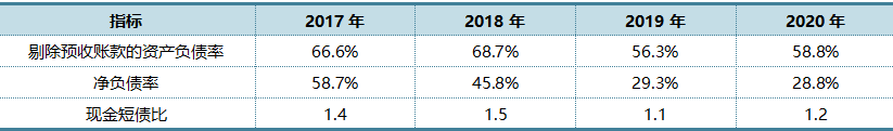 “三道红线”均符合监管要求,潜在杠杆空间较大。2020年,公司剔除预收账款后的资产负债率为58.8%,净负债率为28.8%,现金短债比为1.2,均符合“三道红线”要求,全部绿档,为公司有息负债规模的增长提供了充足的空间,因而为公司持续的良好发展奠定了坚实的基础。