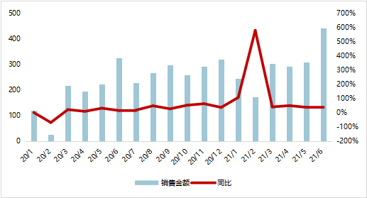 自招商蛇口“美好上新”活动推出以来,其销售业绩快速提升,2021年6月单月销售金额443亿元,创近年来单月新高,同比增长高达36%。根据亿翰智库《2021年1-6月中国典型房企销售业绩TOP200(全口径)》显示,招商蛇口行业占位进一步提升,已位列行业第7。