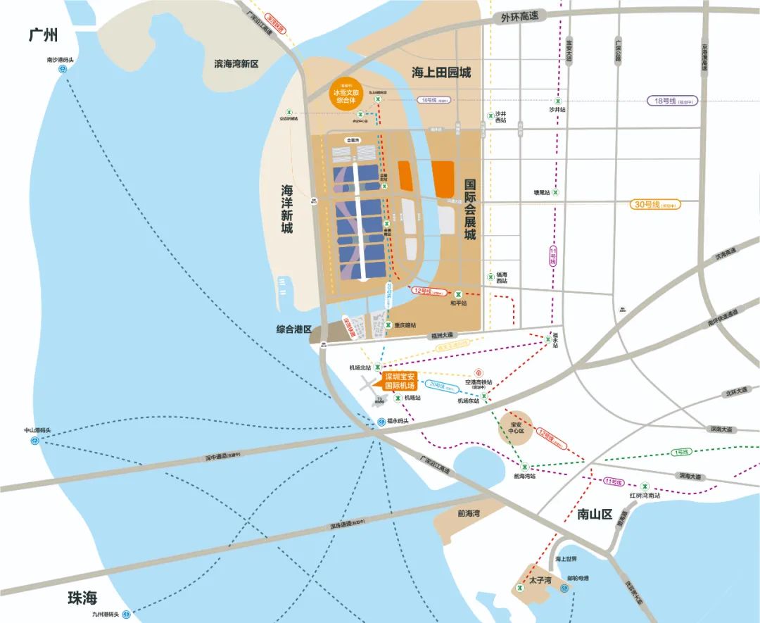 首先我们来了解一下,位于深圳西部、宝安机场北侧的会展湾项目。这个项目实际上是招商蛇口与华侨城两家央企合作打造的。