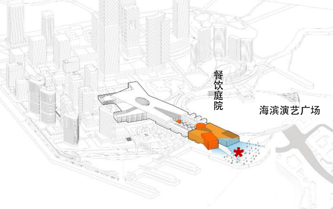 从演艺广场延伸出去的海面上,还浮着一座“海上欢乐岛”。这里将通过建造海上泳池、亲水阶梯、漂浮平台等游乐设施,为市民创造城市亲水体验,景观的互动性、参与性和趣味性都非常高。
