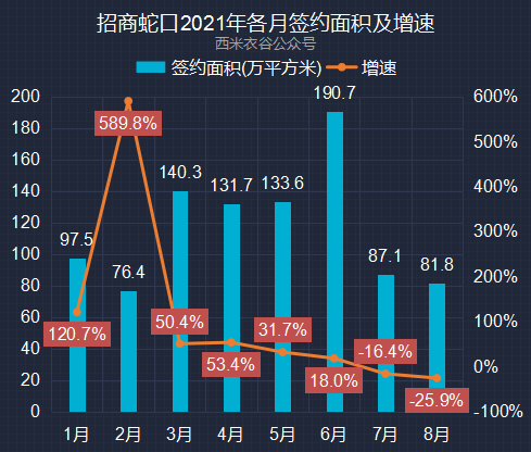 9月9日晚间,招商蛇口发布2021年8月份销售简报:8月公司实现签约销售面积81.82万平方米,同比减少25.90%。公司2021年各月签约面积情况如下: