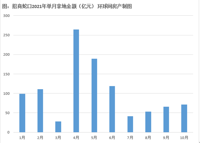 7月26日,随着房企拿地销售比不超过40%的监管新规出台,招商蛇口在土地扩张上的力度有所降低。缺席集中供地的招商蛇口,7、8、9、10月通过入股合作等多元化拿地方式,土地支出金额依然达到了40.8亿,53.3亿、65.89亿及70.99亿元。至2021年12月2日,根据中指研究院披露,招商蛇口1-11月全口径新增货值为2377亿元。