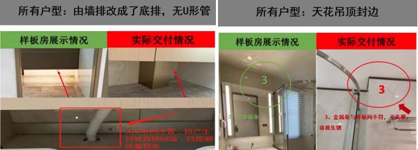 业主则认为该项目存在“多处虚假宣传和货不对板的事实”,并将开放日发现的问题汇总为一篇《关于招商臻府开放日存在差异化的主要反馈意见》,文中提及:“开放日参观房型与样板间存在的差异暂列四十项,包括地面瓷砖、墙体、天花板吊顶封边、厨房门、阳台护栏、踢脚线、洁具、厨房龙头、冰箱柜体、洗碗机等。”