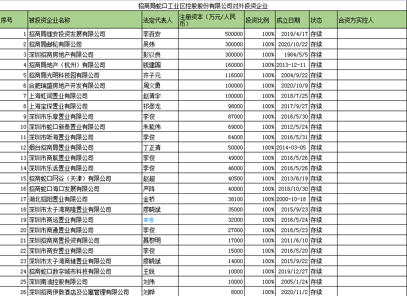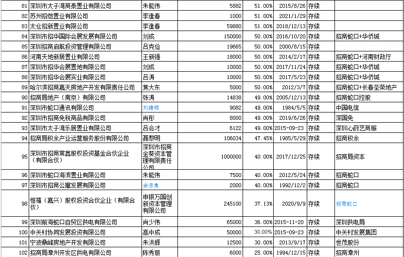 从省份分布来看,招商蛇口的114家全资公司基本上分布在广东。