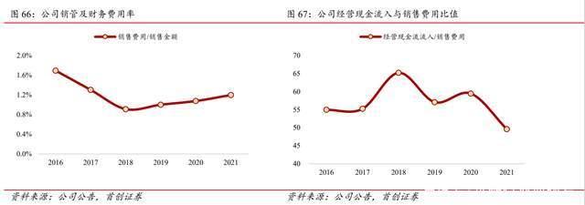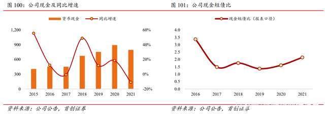 公司管理费用率显著降低,从2019年的 2.7%下降至2021年的 1.8%。随着公司融资成本的持续下降,货币现金的持续增多,公司财务费用率明显下降,从2019年 2.8%下降至 2021 年的1.2%。
