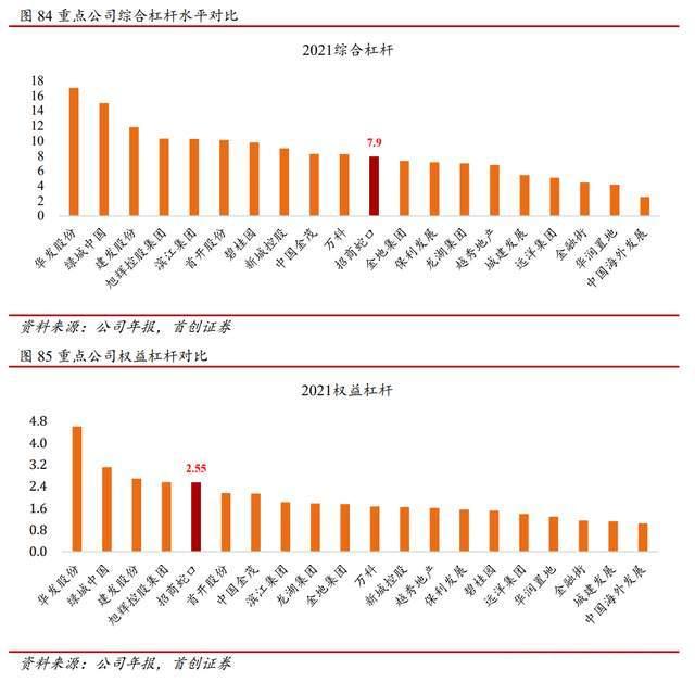 公司权益杠杆在重点房企中处于高位,2019年前海优质土储的资产包注入后,导致2019年当年权益杠杆提升 0.97 倍至 2.4 倍。