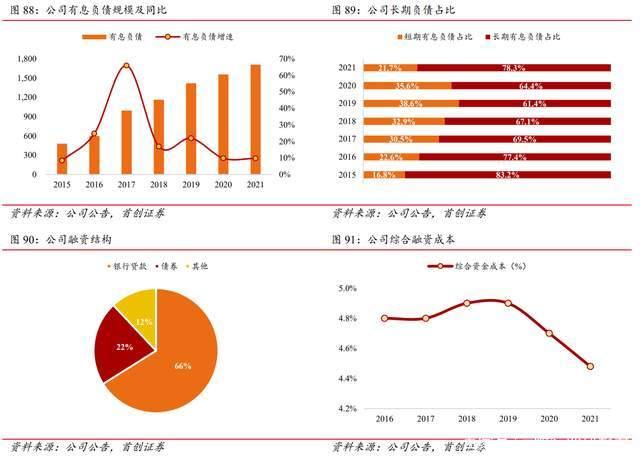 公司综合融资成本从2018年的4.9%下降至2021年4.48%,下降42bp。