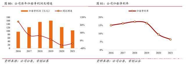 其他收益从2016年的 2.5 亿提升到2019年16.9亿元。2020和2021年公司投资净收益为 61.1、37.3 亿元,同比分别下降 40.3%和 39%,主要源于股权处置收益和其他收益的大幅下滑,同时合作项目有所减少以及行业整体利润率的下行,使权益法核算的投资收益有所下滑。