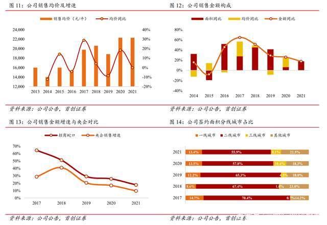 2016-2021年处于深耕广拓阶段,公司单城市平均销售规模从 23 亿元提升至 53.6 亿元。具体城市来看,2021年深圳、上海、苏州、南京等 7 个城市销售规模居当地前三,16 个城市销售规模当地排名前十。