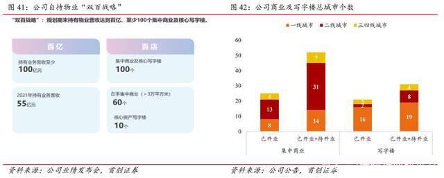 十四五初年,公司就持有型业务提出双百战略,即2025年底,公司持有物业营收达到百亿规模、至少持有百个集中商业及核心写字楼。