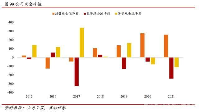 2017年公司拿地积极扩张导致经营性现金流支出较多,2018年经营性现金流净额回正至 105 亿元,此后三年经营现金流保持现金流为正,主要源于公司抓回款策略,提高回款管理精细度,提升销售质量。