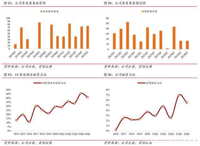 在行业融资渠道尚未完全打开时,公司凭借央企的融资优势,成为受益融资渠道改善的第一批房企。在 21Q3、21Q4、22Q1,分别发行40、73、74.9亿元的境内债。