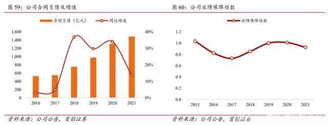 公司合同负债规模稳步增长,从2016年的 525 亿元增至2021年的1488亿元,年复合增速为 23.2%,2018至2020年合同负债同比增速始终保持在30%以上。