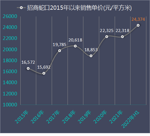 如上图,从2015年以来,公司的销售单价起伏较大,但整体呈现出向上趋势,2022年上半年24,374元/平方米的单价更是力压金地集团的23,998元/平方米,在招保万金四大天王中拔得头筹。