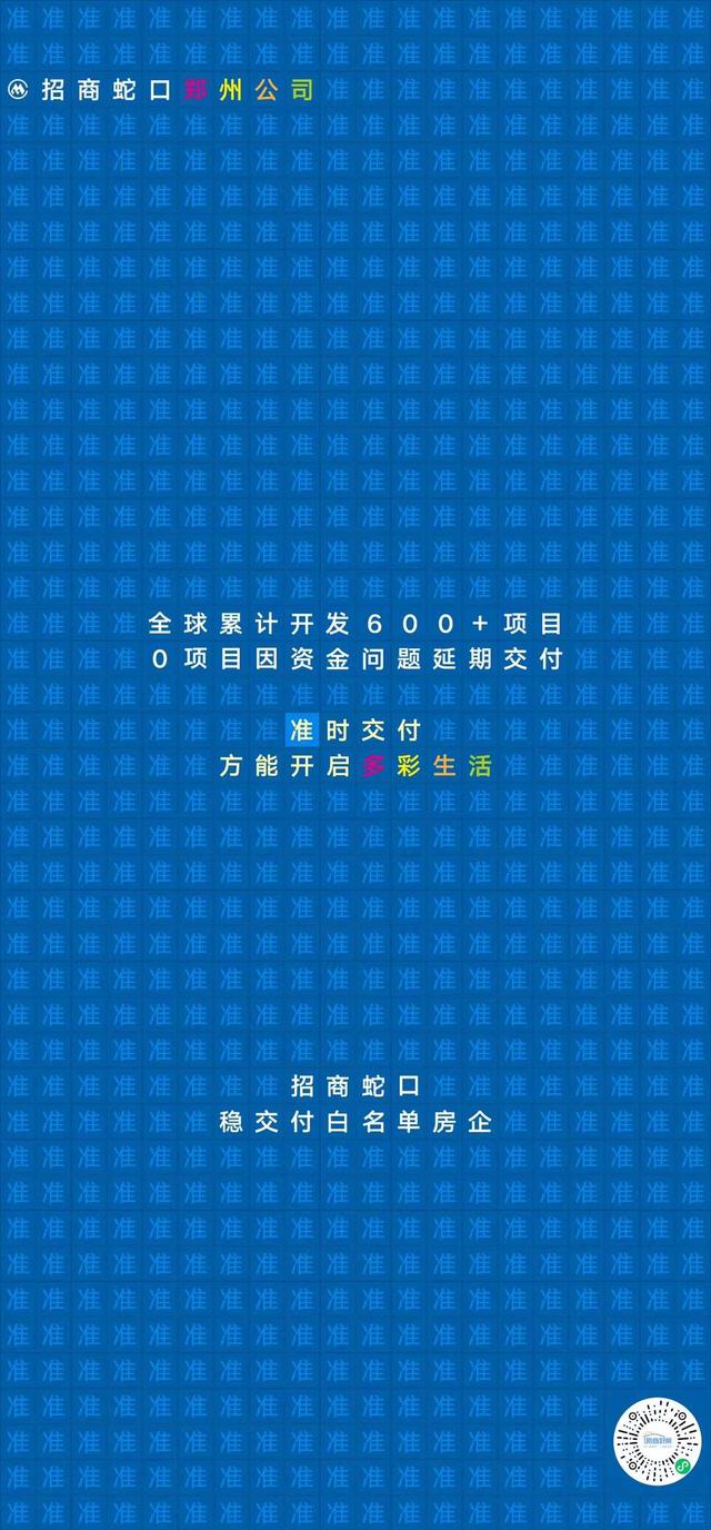 据招商蛇口郑州公司海报,招商蛇口为稳交付白名单房企,全球累计600+项目,0项目因资金问题延期交付。