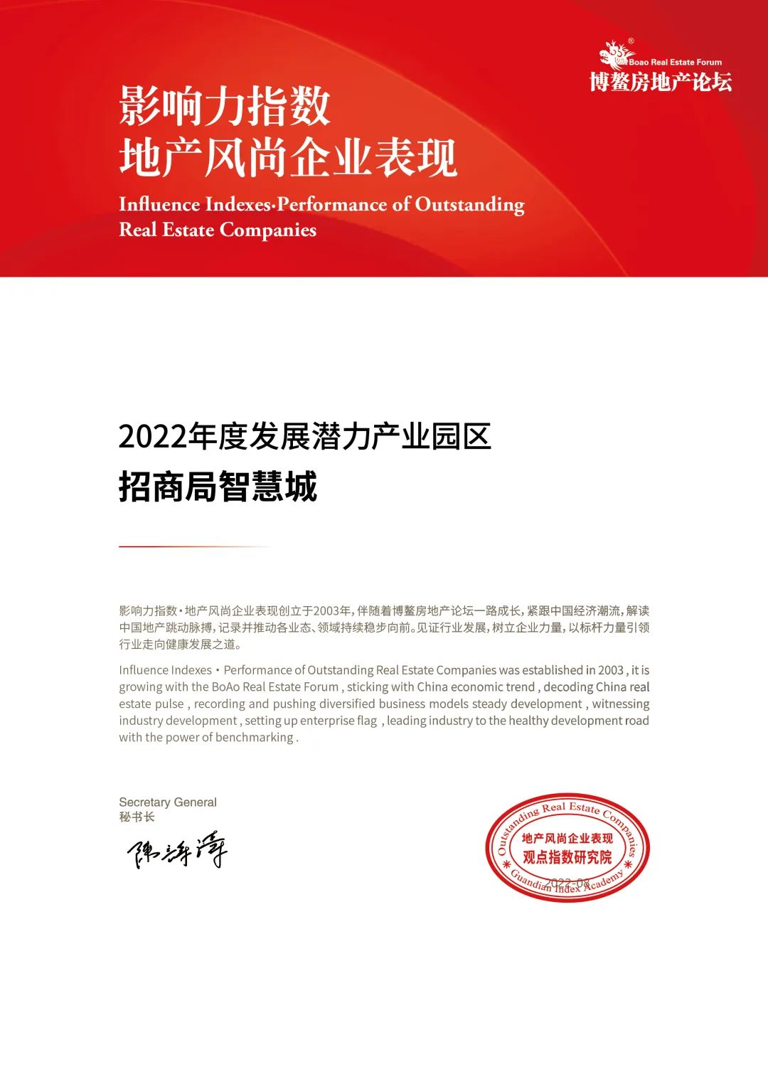 招商局智慧城荣获“2022年度发展潜力产业园区”