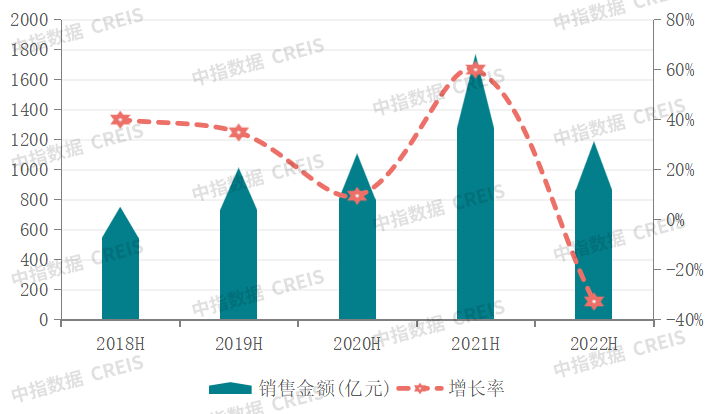 图:2018H-2022H招商蛇口销售额及同比增长率情况