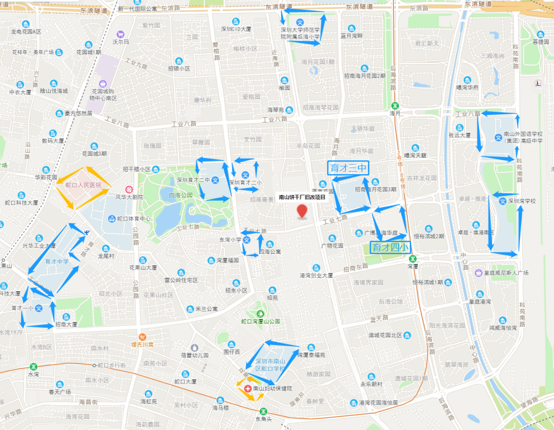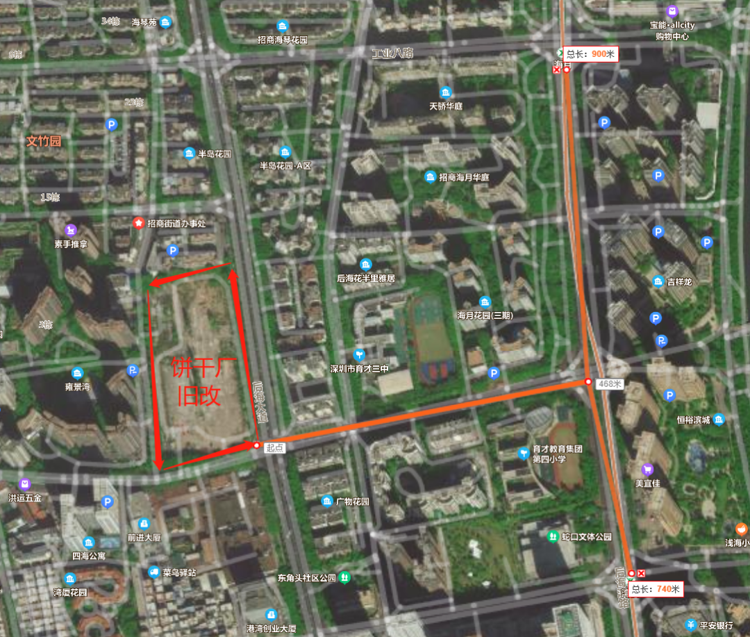 饼干厂旧改所在的湾厦村,位于南山招商街道后海大道与工业七路交汇处。