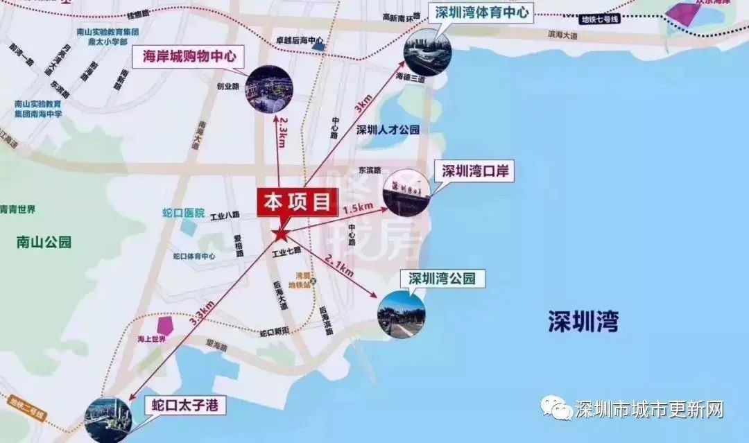 原联合饼干厂城市更新项目位于南山区招商街道,后海大道与蛇口工业七路交汇处,距离地铁2号线海月站约580米(百度地图测距),轨道交通便利,周边配套设施成熟,有海岸城购物中心、深圳湾体育中心、深圳湾公园、蛇口太子港等。