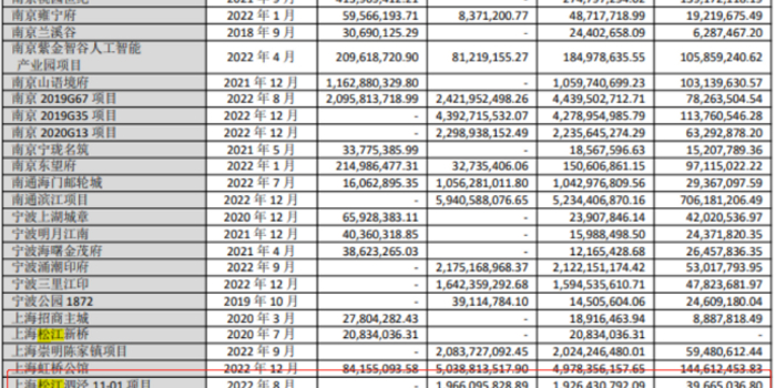 为了弄清楚招商蛇口在各个项目截止2022年的投入情况,东方网地产频道从财报中截取了一份部分项目的投资金额表。根据上述表格,去年一年,招商蛇口对将在2023年至2024年交付的多个项目增加的投入并不多。以招商外滩玺为例,仅增加了2亿。