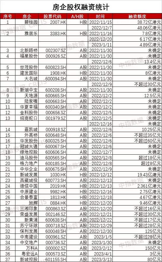 “第三支箭”政策发布后,越来越多的房企主动尝试股权融资。据中指研究院统计,截至目前,共有37家房企公布了定增募资方案,其中包括碧桂园、万科、保利发展等头部企业,也包括大名城、旭辉、荣盛发展、新城控股等民营房企,还包括世茂股份、金科股份等出险房企。根据已公布的定增募资的金额,37家房企拟募资金额已经超过350亿元。