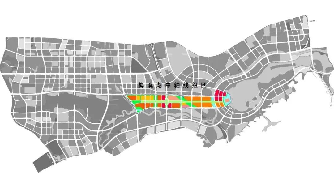 ▲梅溪湖“超级中轴”平面分布示意图