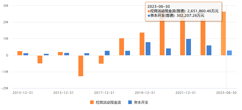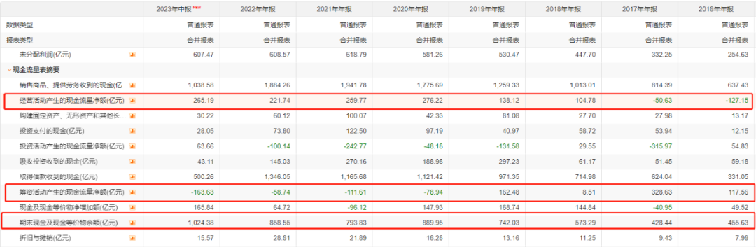 从招商蛇口的现金流量表看,公司近年来经营活动产生的净现金流持续为正且金额较大,今年上半年就高达265.19亿元,已经超过去年全年。