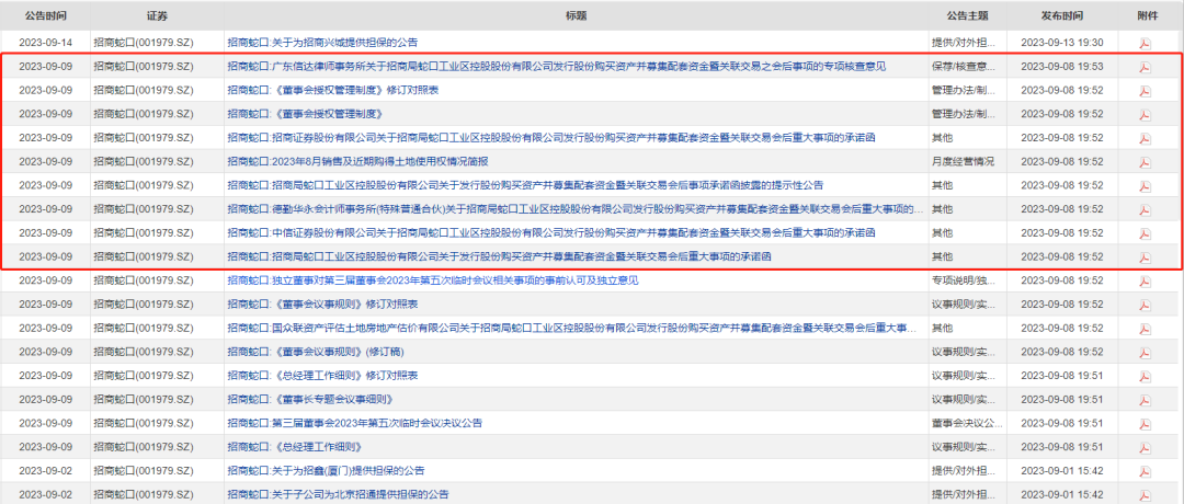 先看看今年8月2日盘后招行蛇口发的几条公告,再看看9月8日盘后发的几条公告,与公司发行股份募集配套资金事项均相关。