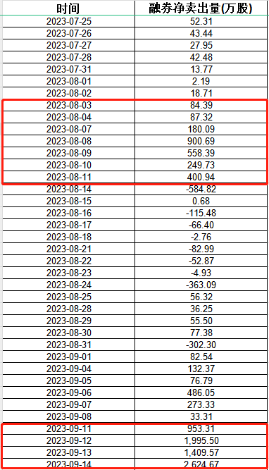 图五:8月2日与9月8日公告后几个交易日的融券情况