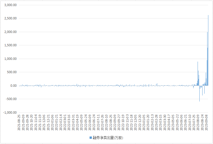 本周一(9月11日)起,招商蛇口的融券卖出量突然大幅飙升,周一至周四分别大幅净卖出953.31万股、1995.50万股、1409.57万股、2624.67万股,短短四天净卖出近7000万股,达6983.06万股,而上周五收盘后,招商蛇口的融券余量也不过2529.83万股,意味着短短四天增加了近3倍。