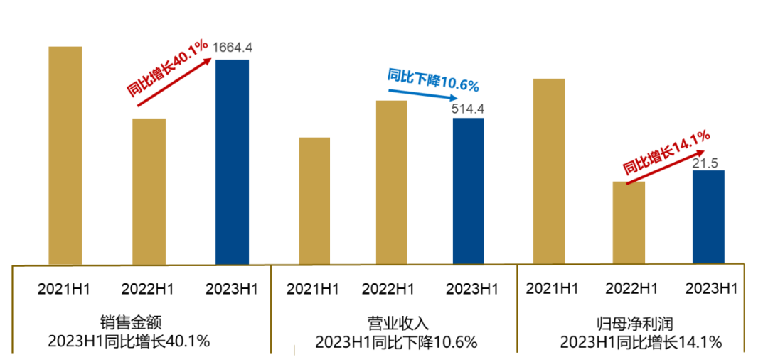 2023年上半年,面对行业环境持续调整,招商蛇口凭借稳健经营的理念、持续的产品创新研发,始终坚持区域聚焦、城市深耕战略,实现有质量规模增长。在房地产市场销售端持续承压下,招商蛇口持续提升市场洞察能力,以精准的营销手段,多措并举推进存货去化。2023年1-6月,招商蛇口累计实现签约销售金额1664.4亿元,同比增加40.1%;累计实现签约销售面积684万平方米,同比增加40.3%。实现营业总收入514.4亿元,实现归母净利润21.5亿元,同比增长14.1%。
