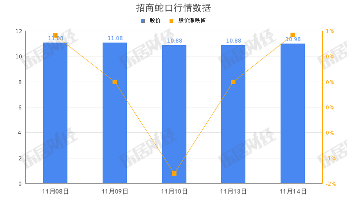 截至11月14日,招商蛇口(001979.SZ)股价收盘报10.88元,涨0.92%,总市值994.88亿元。