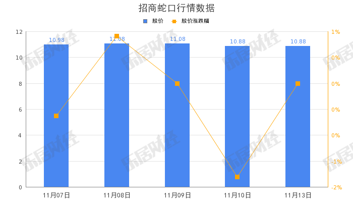 截至11月13日,招商蛇口(001979.SZ)股价收盘报10.88元,总市值985.82亿元。