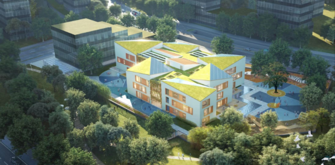 成都天府总部商务区近零能耗幼儿园是新区首个近零能耗幼儿园,该项目总用地面积7919.49㎡,总建筑面积约9379.60㎡。运用BIPV(建筑光伏一体化)等技术,打造“孩子们的绿色宇宙”。