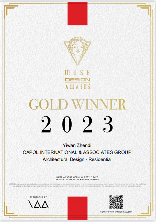 在2023美国缪斯设计奖(MUSE Design Awards)第二季获奖名单中,前海一湾臻邸项目成功斩获Platinum 缪斯设计奖——金奖,以强势产品力赢得国际权威的认可与青睐。缪斯设计奖创建于2015年,由美国博物馆联盟(AAM)与美国国际奖项协会(IAA)主办,每年评选一次,是全球创意领域最具影响力的国际奖项之一。