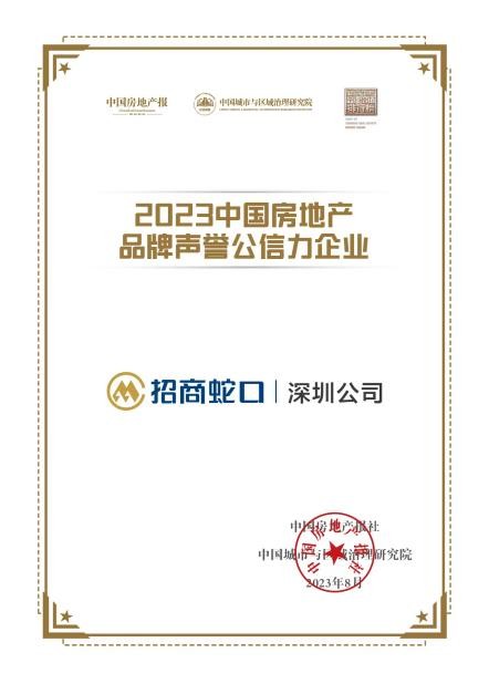 在由中国房地产报、中国城市与区域治理研究院联合主办的“2023第十三届中国房地产品牌发展大会”上,招商蛇口深圳公司获得“2023中国房地产品牌声誉公信力企业”奖项。此次品牌奖项的荣获,是深圳公司长期践行品牌文化理念的成果体现,也是市场及行业对深圳公司多维度全面精研居住空间功能和体验,以高质量人居作品承载美好生活的认可。
