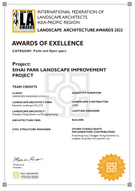 四海公园项目荣获国际联合会景观建筑师亚太地区2023景观建筑奖-卓越奖。IFLA(International Federation of Landscape Architects),中文名译为“国际风景园林师联合会”,于1948年在英国剑桥大学成立,总部设在法国凡尔塞。IFLA是受联合国教科文组织指导的国际风景园林行业的影响力最大的国际学术最高组织。据悉,2023年亚太地区景观设计奖大赛旨在表彰风景园林师在保护、倡导、支持和改善国家、地区或城市人居环境领域的重大贡献。