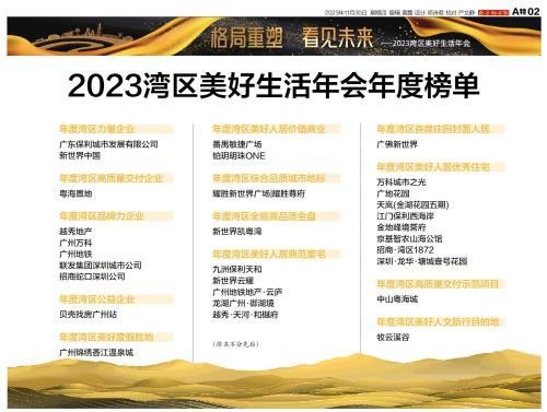 在《南方都市报》发布的2023湾区美好生活年会年度榜单中,招商蛇口深圳公司荣膺“年度湾区品牌力企业”殊荣。该奖项的颁发,是对深圳公司在过去一年聚焦湾区发展,实力匠造品质人居的认可与肯定。