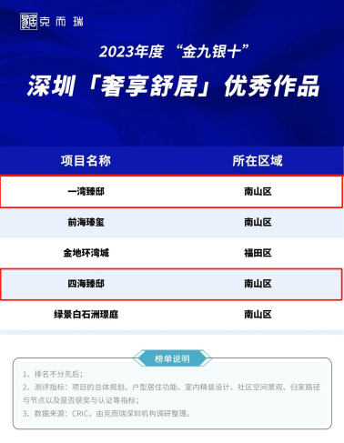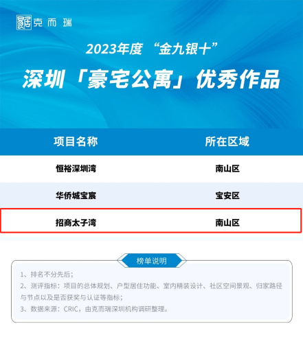 2023年,深圳公司打磨与升级更多产品细节,不断推陈出新更多产品理念,为城市打造更多具有优质产品力的人居作品。在今年克而瑞统计的2023年度“金九银十”深圳产品力测评榜单中,会展湾雍境项目荣获「匠心美宅」优秀作品,一湾臻邸、四海臻邸项目荣获「奢享舒居」优秀作品,招商太子湾项目荣获「豪宅公寓」优秀作品,以优秀产品力彰显出项目和企业最旺盛的生命力。