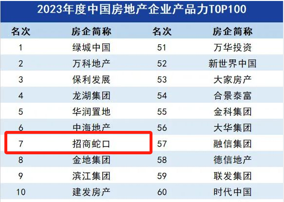 深耕湾区四十余载,招商蛇口始终以“坚守产品主义”为初心,精研美好生活,用心做好产品。2023年,招商蛇口凭借不断精进的产品力再获认可,上榜克而瑞发布的《中国房地产企业产品力TOP100》榜单,位列全国第7位。同时,招商蛇口“玺系”和“雍系”产品也分别上榜2023年全国十大顶级产品豪宅系、2023年全国十大轻奢精品产品系榜单。
