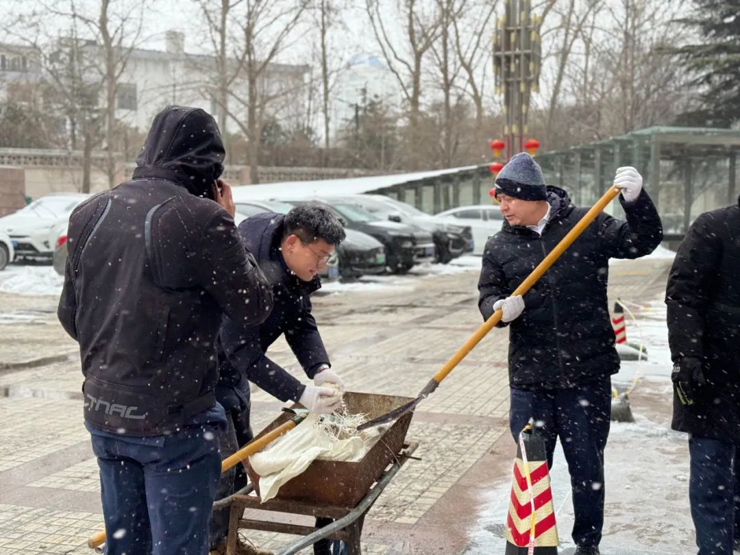 大雪为城市风光增添别样景致的同时,也给业主的出行带来诸多不便。为保障业主正常出行,快速恢复道路畅通,招商蛇口物业团队第一时间拉响除雪“集结号”,清扫路面保通畅。