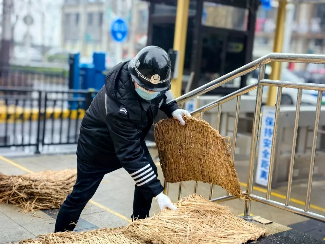 撒盐防止结冰、铺设防滑草垫、跟踪室外设施设备状态、修剪树枝……以动制“冻”,全力保障业主的出行安全。