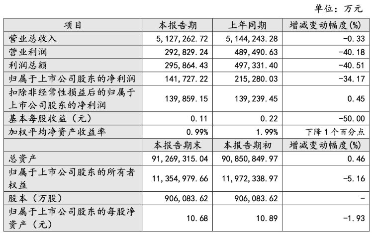 据招商蛇口7月26日发布的2024年半年度业绩快报,报告期内,公司实现营业总收入512.73亿元,同比下降0.33%;归属于上市公司股东的净利润14.17亿元,同比下降34.17%。