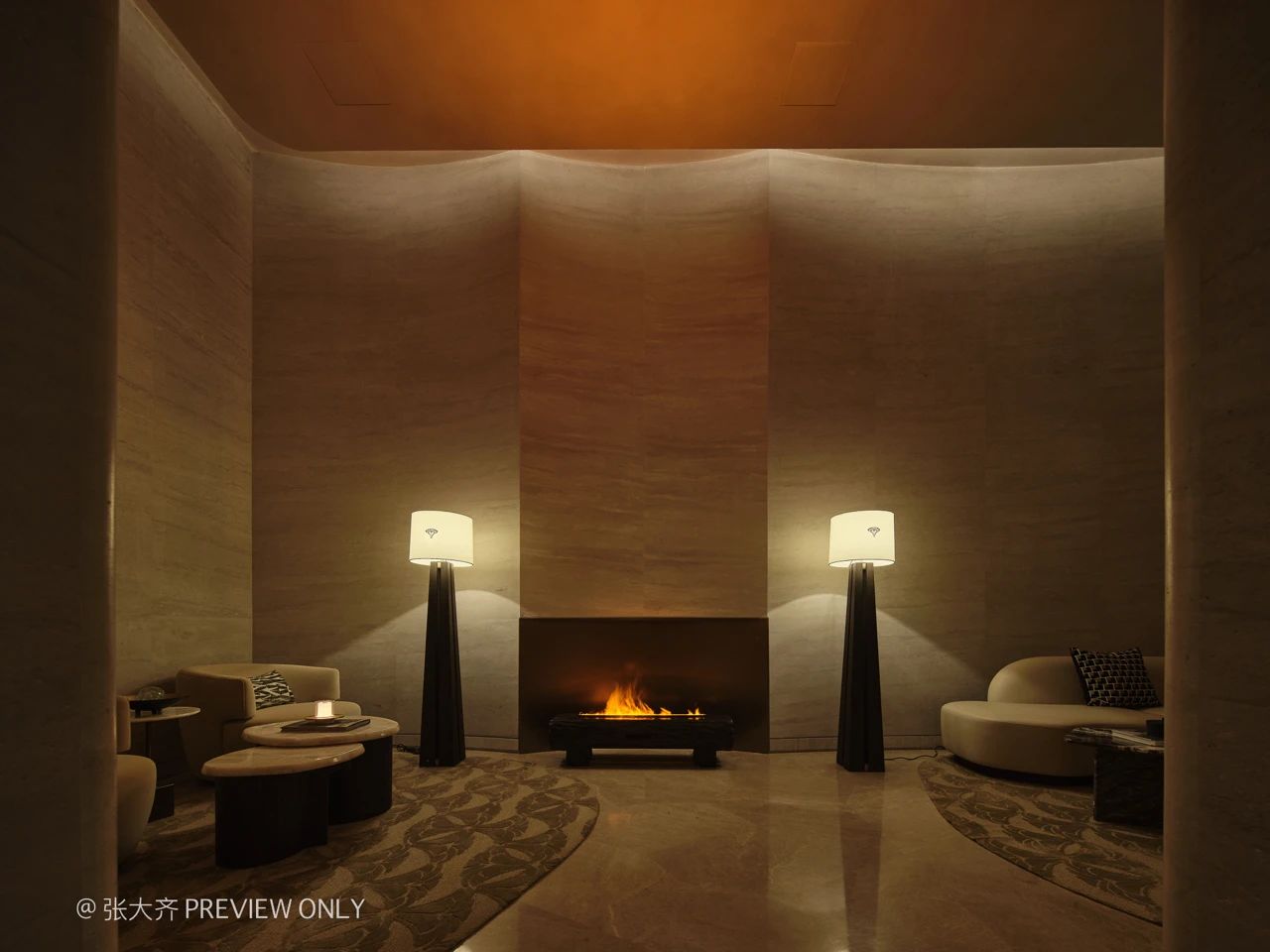为什么要重视归家的车行道?大部分人其实是从地下归家,地库作为出行使用频率最高的场所,这样的设计更符合真实的使用场景。你可以更从容地在这里等车,司机也可以在这里等你——这里专门配了一个很豪华的司机休息室,而且是离会所入口最近的折角空间。