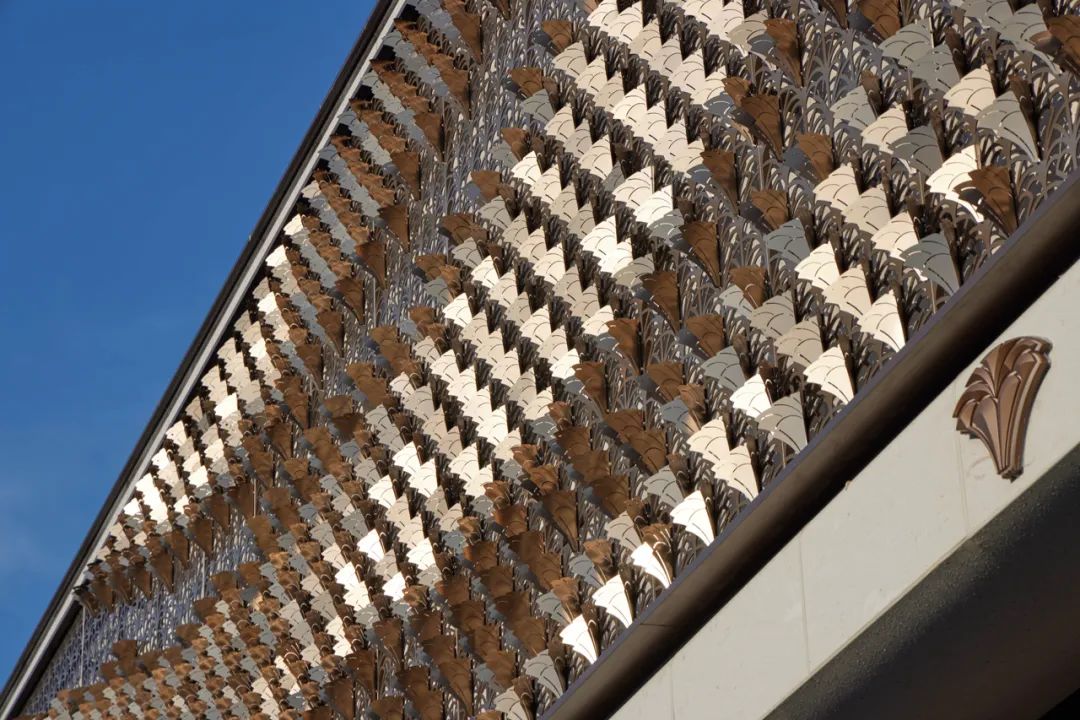 如果你是打车回家,你可以告诉司机师傅:就到那棵大树背后。以这棵铁冬青为中心的落客区,像是一顶华盖,只有步入其中,才能感受到那种气韵;门柱与照壁,用的是非遗传承人的锻打锤纹紫铜。