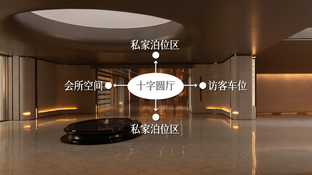 这个「中央车站」不仅功能强大,而且非常有仪式感:他们用一个非常有仪式感的十字圆厅,把访客车位、会所空间和私家泊位连接在了一起。???