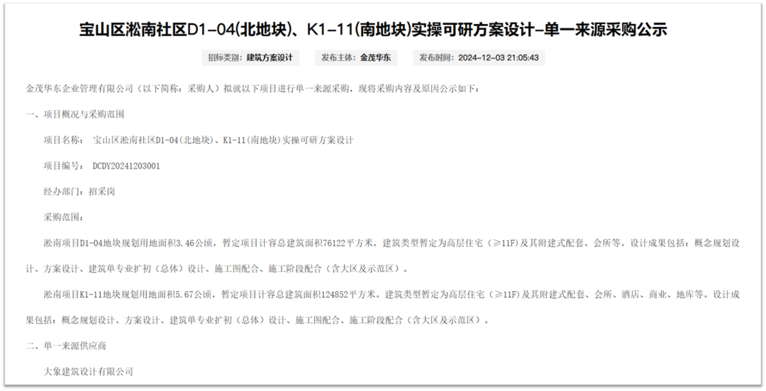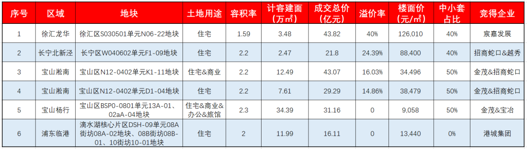 金茂连中3元成为最大赢家:分别以总价43.07亿、29.2亿分别竞得宝山淞南2宗地块,31.16亿斩获宝山区宝山站地块;